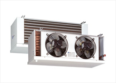 Commercial heavy-duty air coolers with a copper/aluminium coil block for general application in small to medium-size cooling and freezing rooms.